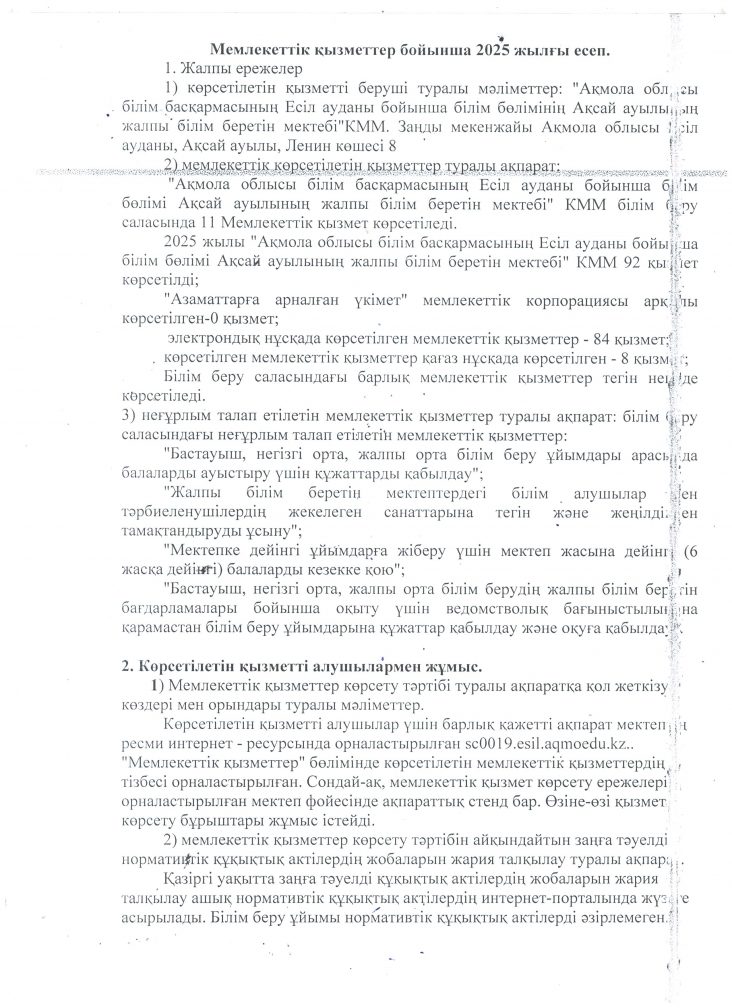 Мемлекеттік қызметтер бойынша 2025 жылғы есеп