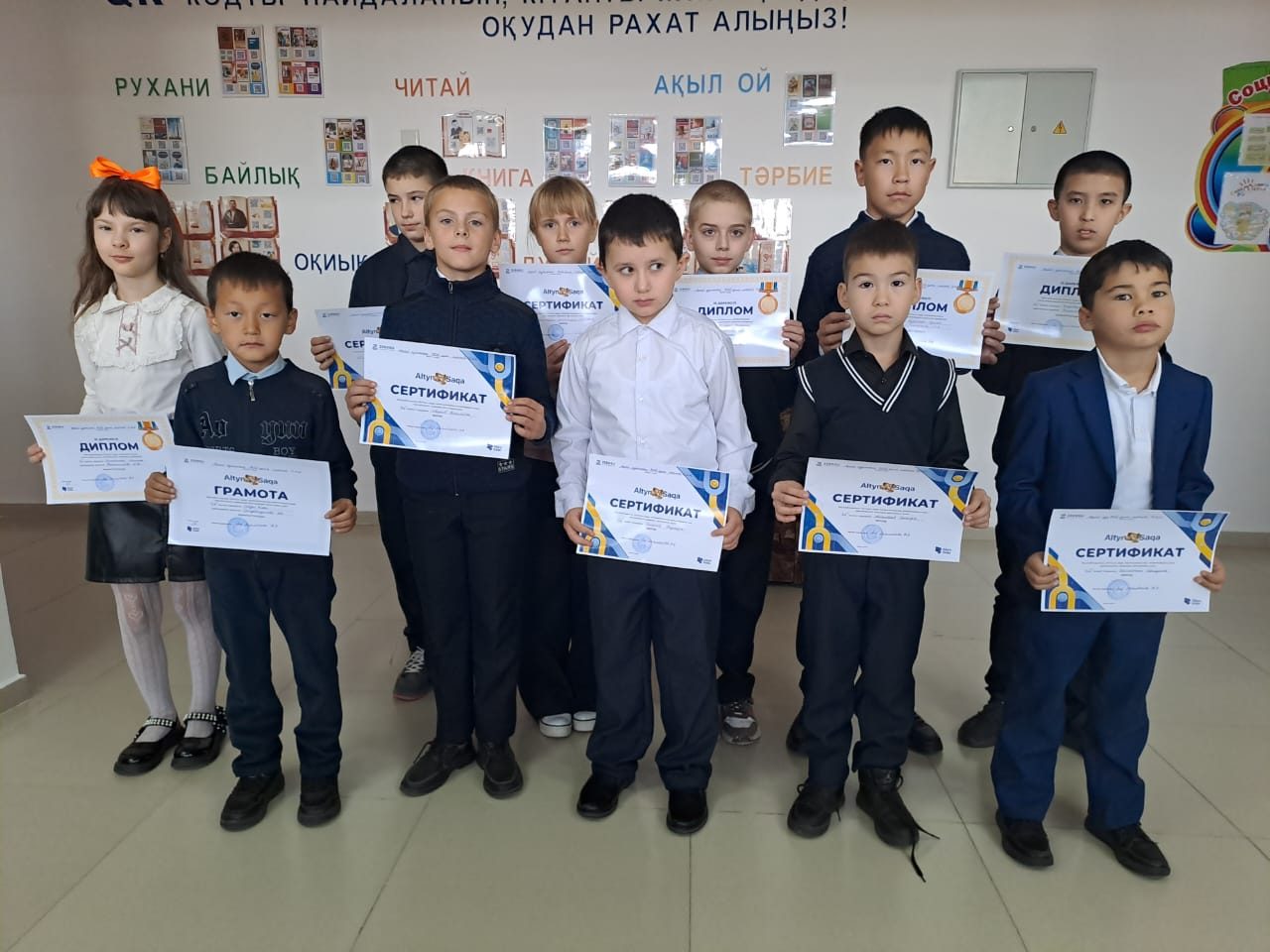 3-4 сынып, 5-6 сыныптарға арналған “Алтын сақа” олимпиадасының мектепішілік кезеңі өткізілді. 3 сынып оқушысы Тимошенко Милана, 5 сынып оқушылары Нұражан Әділет, Умарбеков Бахтияр және 6 сынып оқушысы Комарь Никита екінші кезеңге өтті. #олимпиада#алтынсақа