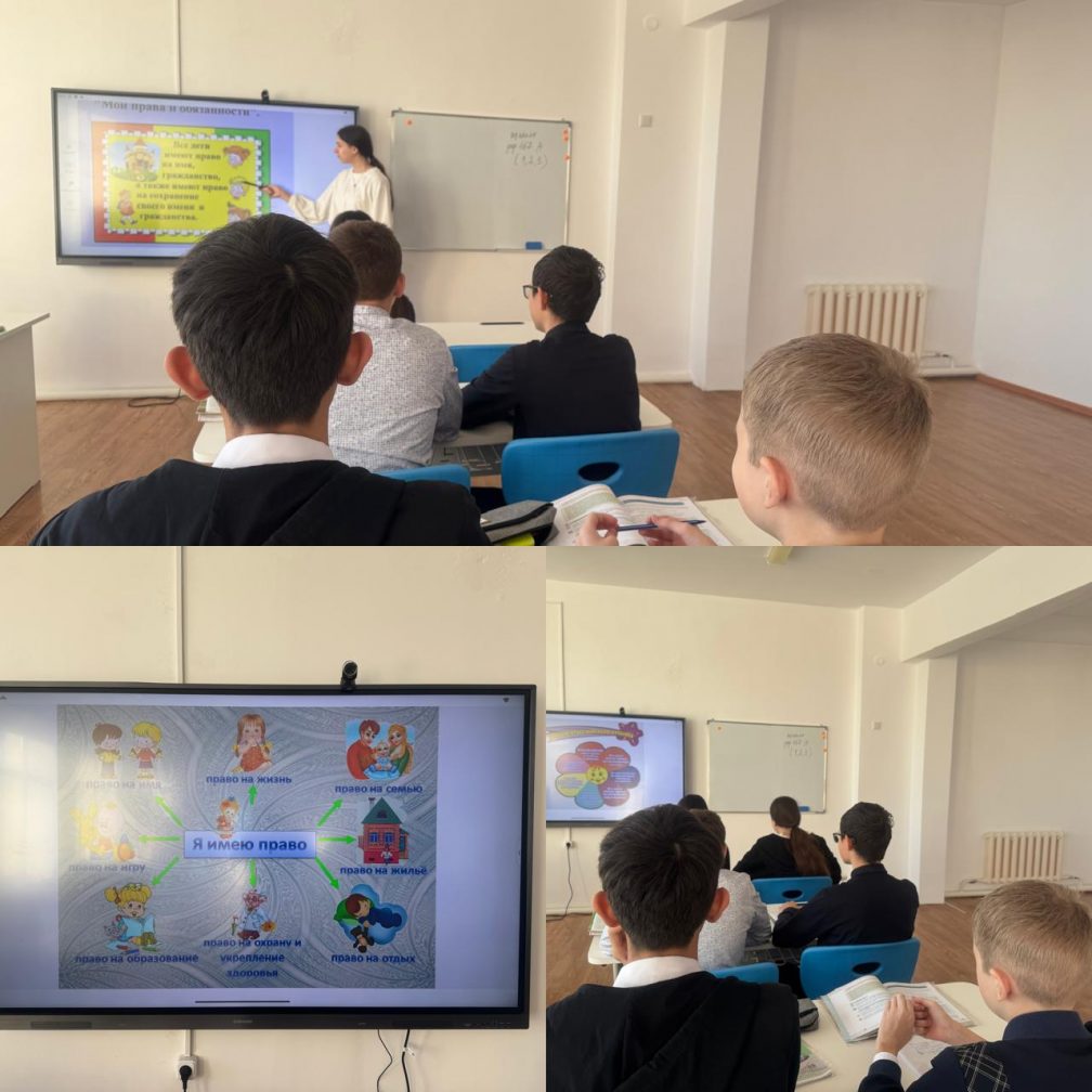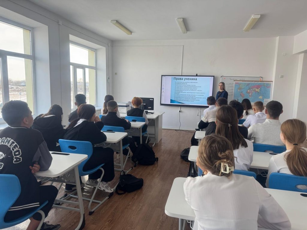 "Адам азамат" бағдарламасын жүзеге асыру және құқықтық сауаттылық деңгейін арттыру аясында "Заң және менің құқықтарым" тақырыбында сынып сағаттары өткізілді