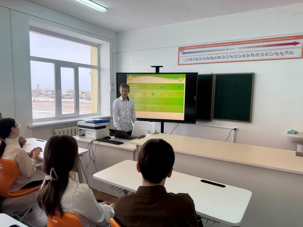 Химия, биология және география онкүндігі аясында "Өз ойыны" зияткерлік шоуы "атты сыныптан тыс іс-шара өтті. Іс-шара қызықты, танымдық және серпінді өтті. Оқушылар белсенділіктің жоғары деңгейін көрсетті, биология және география бойынша білімдерін көрсетті, түрлі күрделіліктегі тапсырмаларды орындады, сұрақтарға жауап берді және табиғат құбылыстарын талқылады. Ойын танымдық мотивацияның, сыни ойлаудың және командада жұмыс істей білудің дамуына ықпал етті. Балалар өз ой-өрістерін кеңейтіп, зерттелген материалдарды қайталап, жаңа ғылыми фактілерді білді.