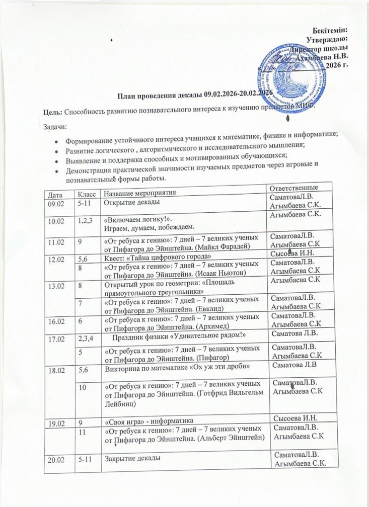 Ақсай ауылының жалпы орта ББ мектебінде, математика, физика және информатика онкүндігі ашылды: 9-20 ақпан аралығында мектебімізде математика, физика және информатика пәндерінің онкүндігі өтеді. Бұл нақты ғылымдар әлеміне қызықты саяхат, қызықты ашылулар, эксперименттер және интеллектуалдық сынақтар өтті.