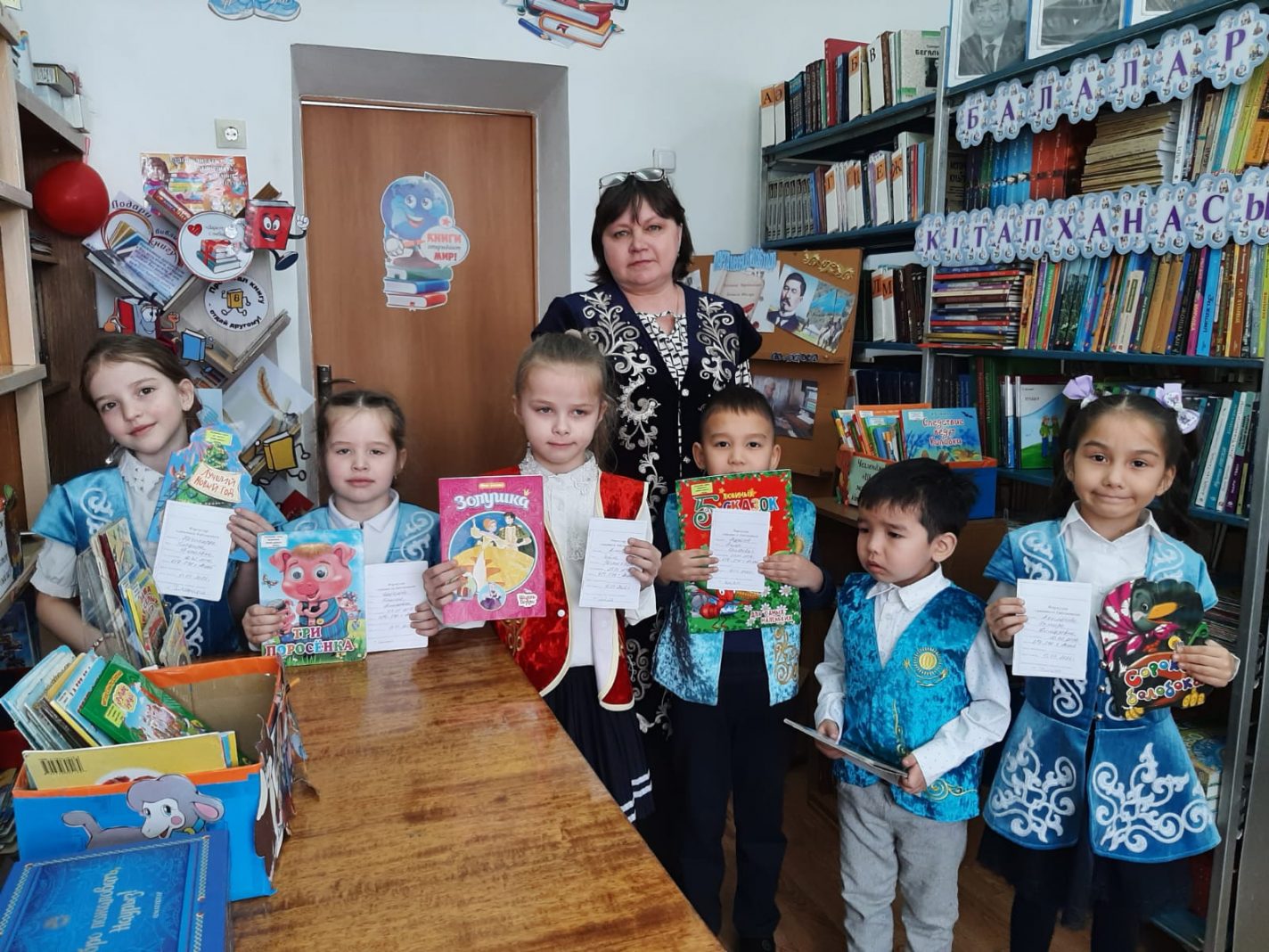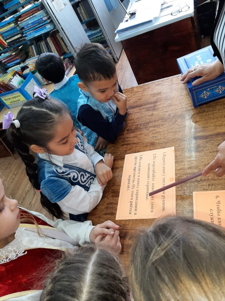 Мектеп кітапханасында 1 сынып оқушыларымен "Оқырманға арнау!" іс-шарасы өтті. Балалар кітапхана ішінде қызықты саяхат жасады, жұмбақтар шешті, ертегі кейіпкерлерін атады, сөздерден кітаптармен жұмыс істеу ережелерін жасады. :"Алақай-біз оқырмандармыз!" деген керемет эмоциялар балаларды толғандырды